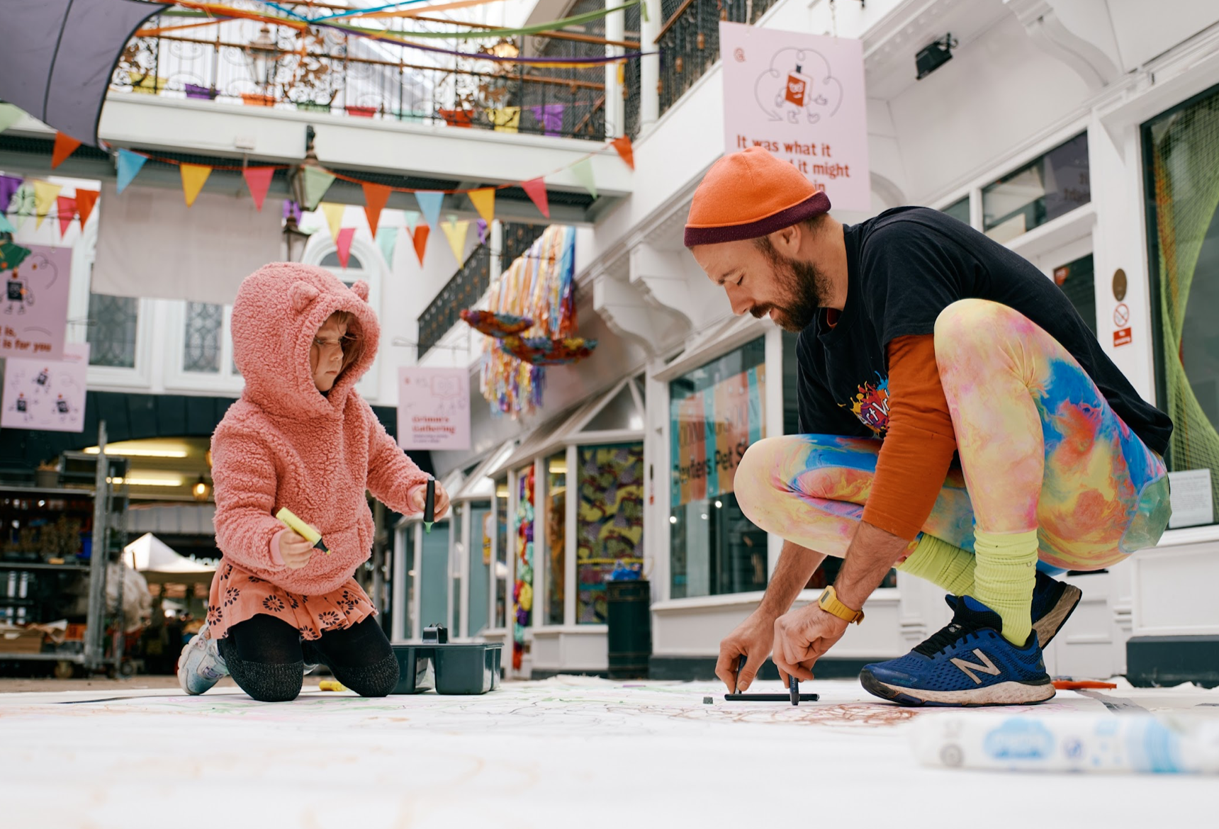 During the 2 hour session children will take part in a workshop with artist Johnsey, practice mark making to music, and have the creative freedom to play and draw however they’d like to. The session includes private rental of the entire space, plus a 10m roll of paper to be filled, which can then be taken home.